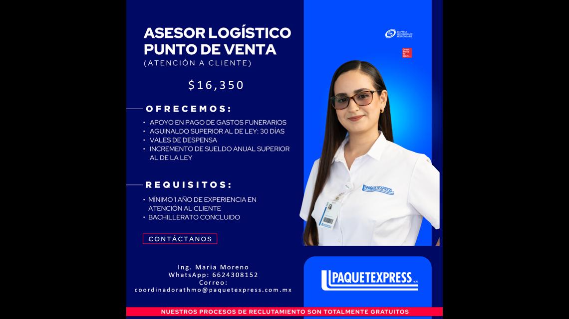 En Paquetexpress, desde hace 38 años movemos lo que más importa. Con cobertura nacional y entregas internacionales, garantizamos soluciones logísticas integrales. Creemos firmemente en relaciones que suman, porque cuando tú creces, nosotros crecemos contigo. Únete a nuestro equipo y sé parte de este gran Familia Azul.