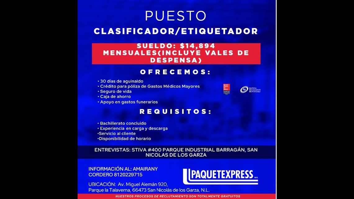 Clasificador/Etiquetador - San Nicolas de los Garza