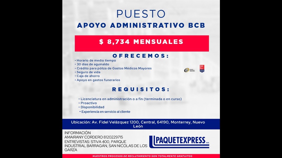 Apoyo Administrativo BCB (Del área comercial) - Monterrey