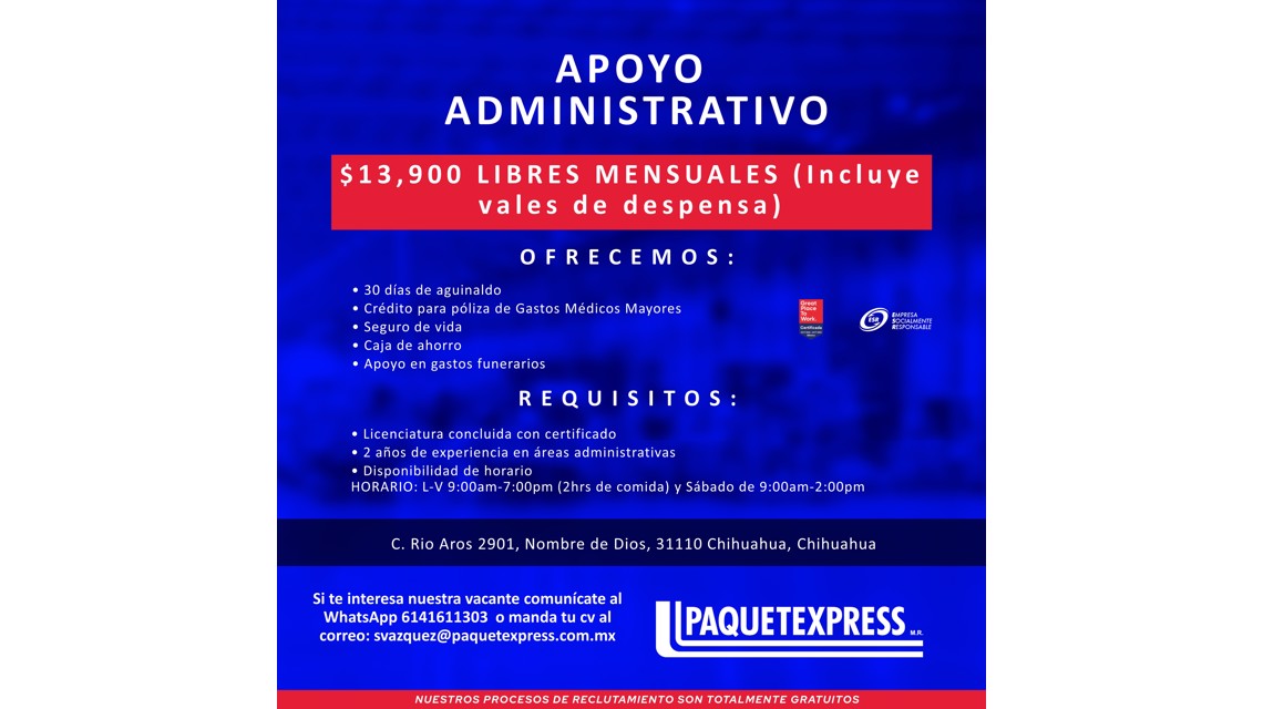 En Paquetexpress, desde hace 38 años movemos lo que más importa. Con cobertura nacional y entregas internacionales, garantizamos soluciones logísticas integrales. Creemos firmemente en relaciones que suman, porque cuando tú creces, nosotros crecemos contigo. Únete a nuestro equipo y sé parte de este gran Familia Azul.