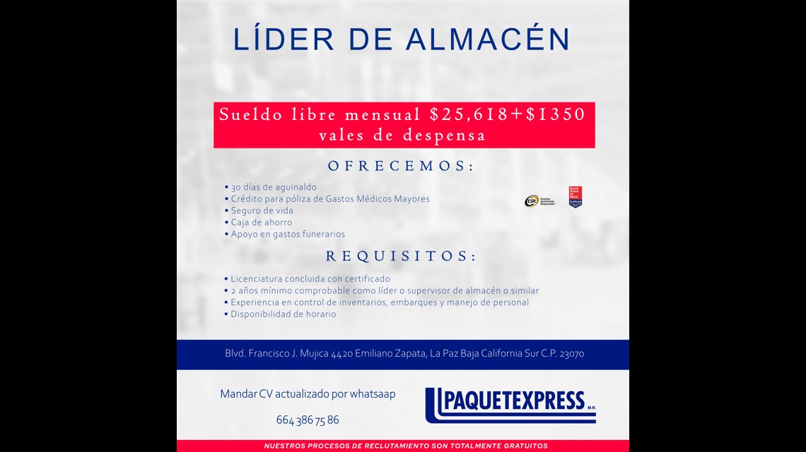 Empresa Nacional líder en el ramo de logística con mayor cobertura del país y de mayor crecimiento en el sector, se encuentra en búsqueda del mejor talento. Te invita a formar parte de nuestro gran equipo de trabajo como: