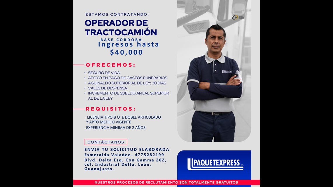 En Paquetexpress, desde hace 39 años movemos lo que más importa. Con cobertura nacional y entregas internacionales, garantizamos soluciones logísticas integrales. Creemos firmemente en relaciones que suman, porque cuando tú creces, nosotros crecemos contigo. Únete a nuestro equipo y sé parte de este gran Familia Azul.