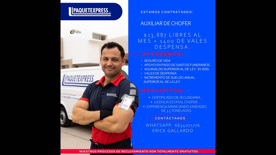 En Paquetexpress, desde hace 39 años movemos lo que más importa. Con cobertura nacional y entregas internacionales, garantizamos soluciones logísticas integrales. Creemos firmemente en relaciones que suman, porque cuando tú creces, nosotros crecemos contigo. Únete a nuestro equipo y sé parte de este gran Familia Azul.